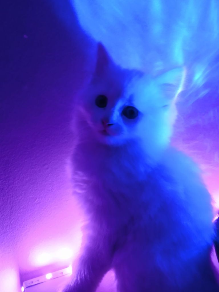 Denna typ av kattbild skulle kunna vara gjord i dator. Men katten stod vid en ljusslinga så att denna effekt uppstod.