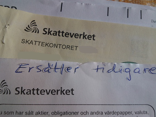 Är noga med att skriva “Ersätter tidigare blankett” på den nya.