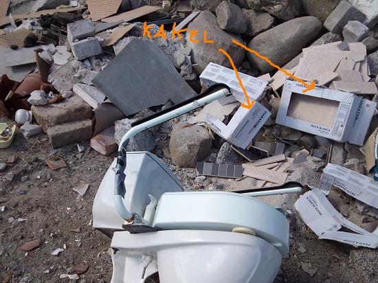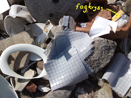 Här finns ny mosaik med tillhörande fogkryss i obruten förpackning; det är väl någon som insåg sin begränsning…