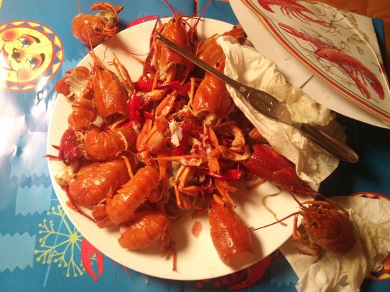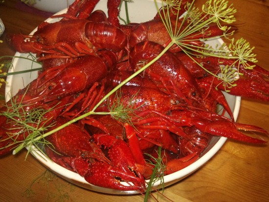 Ett fång härliga kräftor väntar; egna dillkronor.