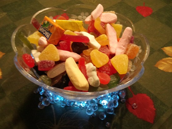 Jag hittar ingen godis i skålen som jag vill ha. Men det ser snyggt ut!