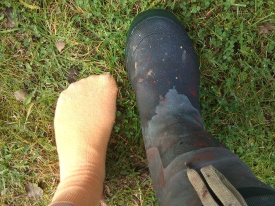 Ska jag gå ut idag, så måste jag antingen ha stora stövlar eller gå i strumplästen.