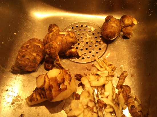 Här skalar jag jordärtskockor till soppa, oj så gott!