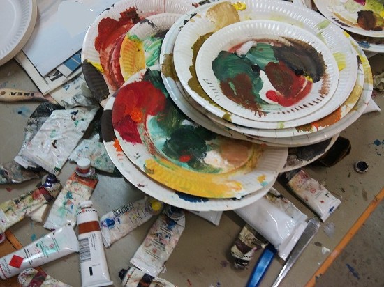 Titta, vilken avundsvärd röra av färgtuber och paletter!