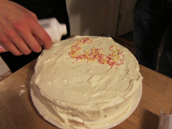 Och ett lager var vaniljkräm med krossad dajm, mums!