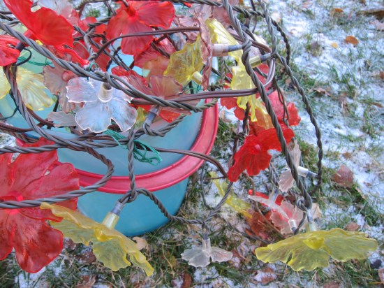 Och så upp med julslingan innan det blir för kallt och snöigt;